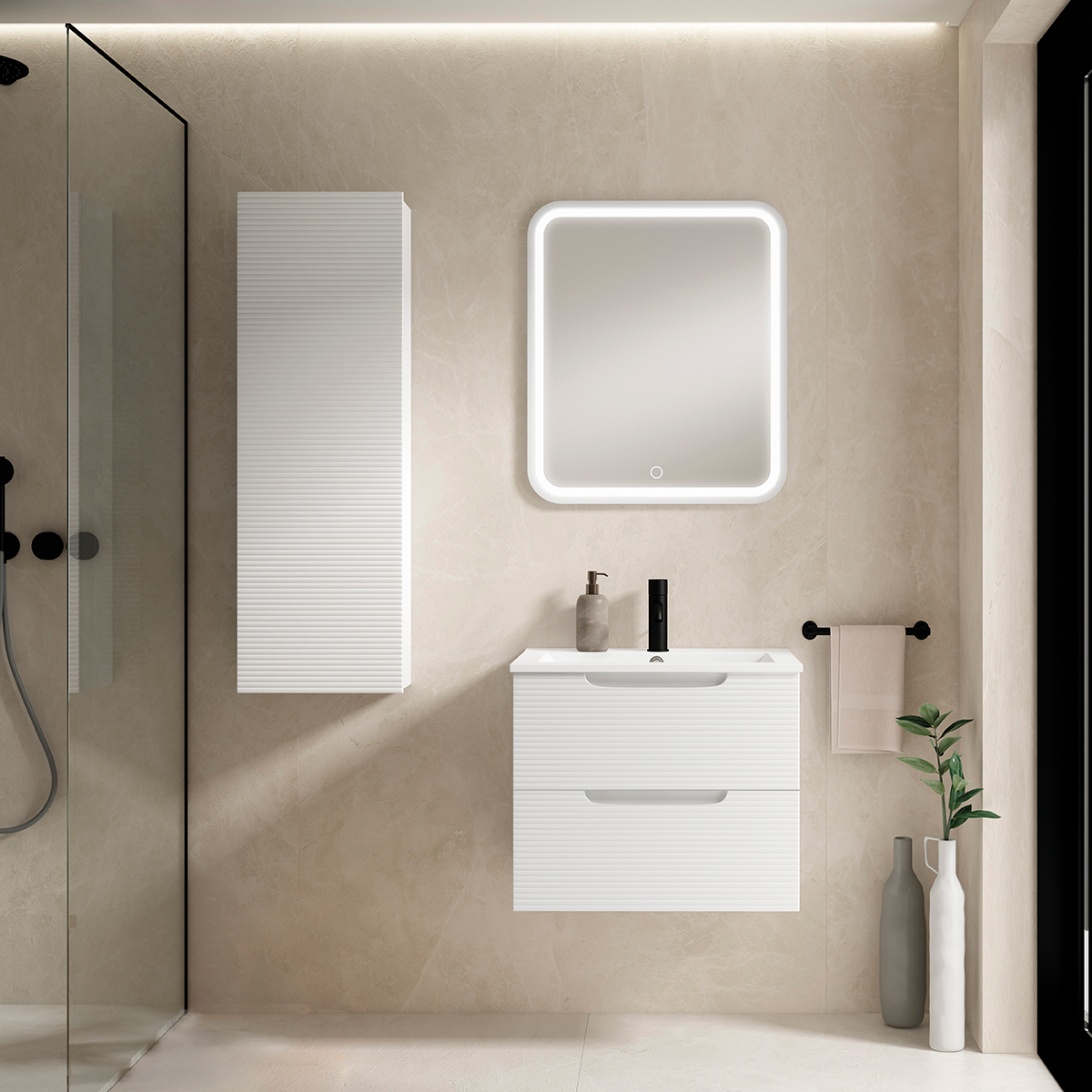 Composición URBAN 60 blanco mate MDF ondulado, espejo NATURA