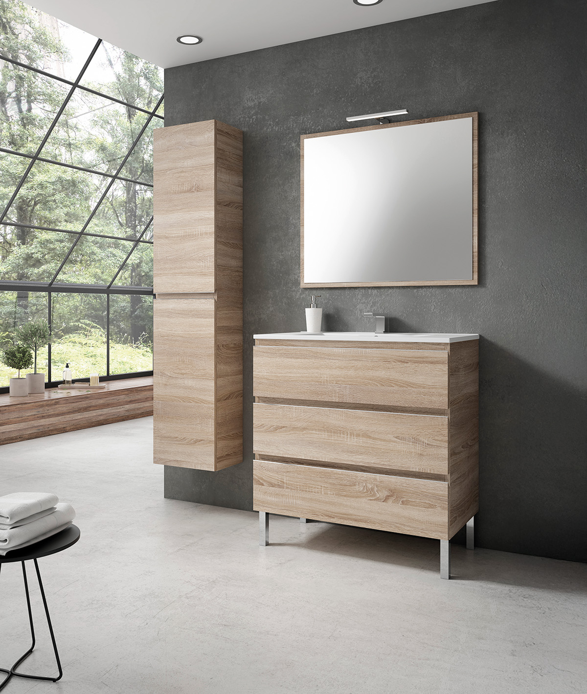 Composición Zens 3 caj. 80 roble, espejo BISEL